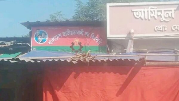আমিনুল ইসলাম দাবি করেন, রেজা মার্কেট ছাড়ার জন্য তার কাছে ১০ লাখ টাকা দাবি করেছেন। টাকা দিতে অস্বীকৃতি জানালে আরও ক্ষতি করার হুমকি দেন। এরপর মার্কেটে বিএনপির ইউনিয়ন কার্যালয়ের সাইনবোর্ড লাগানো হয়।