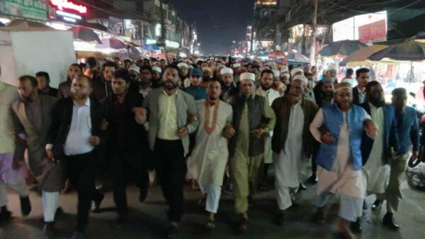 রবিবার (২৫ জানুয়ারি) বাদ মাগরিব পৌর এলাকার খাস মহল কেন্দ্রীয় মসজিদের সামনে থেকে মিছিলটি বের হয়ে ‌শহরের প্রধান প্রধান সড়ক প্রদক্ষিণ শেষে ‌উপজেলা জামায়াতে ইসলামীর দলীয় কার্যালয়ের সামনে গিয়ে শেষ হয়।