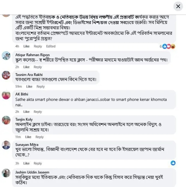 ওই পোস্টে যারা মতামত জানিয়েছেন, তাদের বেশিরভাই মন্ত্রণালয়ের প্রস্তাবটিতে নেতিবাচক অবস্থানের কথাই তুলে ধরেছেন। কেউ কেউ সিদ্ধান্তের সাথে একমত হয়েছেন। অনেকে আবার বিকল্প সিদ্ধান্ত নেওয়ারও আহ্বান জানিয়েছেন সরকারের কাছে।