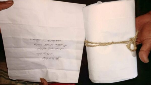 রাজশাহী প্রতিনিধি: রাজশাহীতে জাতীয় নাগরিক পার্টির (এনসিপি) এক নেতার বাড়ির সামনে কাফনের কাপড় ও চিরকুট ফেলে গেছে দুর্বৃত্তরা। চিরকুটে লেখা ছিল— ‘প্রস্তুত হ রাজাকার। মায়ের দোয়া নে। তোদের দিন শেষ। আরও পড়ুন